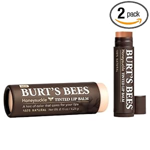 I'm SO happy with this product! I was a little skeptical as I once originally got the original Burt's Bees balm and I couldn't stand the smell, it made me almost gag. However, I do not like lipstick and lip gloss is too drying and sticky for me so when I discovered this, I couldn't wait. I bought one today and I love the feeling on my lips and the color! The honeysuckle one is comparable to a nude color. Once again, woopee!!